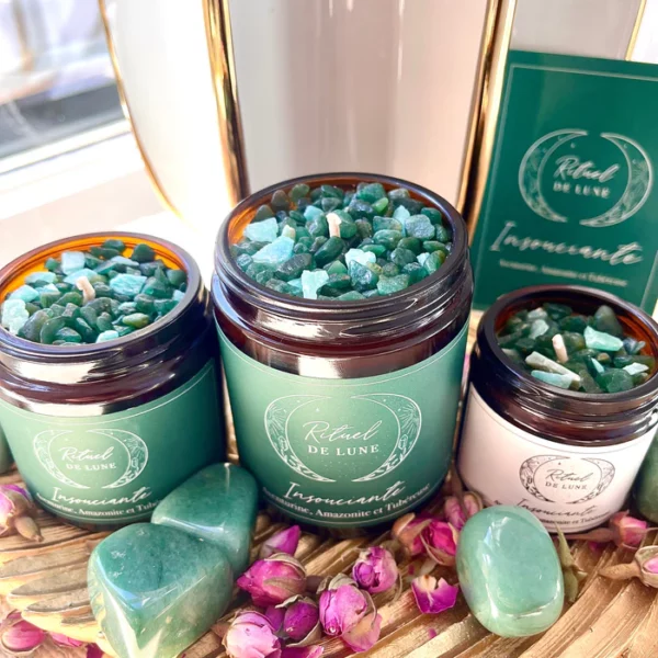 Avant d’allumer la bougie, retirez les pierres d’amazonite et d’aventurine.