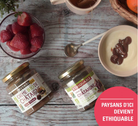Composée à 52 % de châtaignes et de sucre de canne bio et équitable, notre crème offre une expérience de dégustation fidèle au fruit. Sans vanille ni arômes artificiels, elle séduit par son authenticité et sa généreux. Selon la récolte, les châtaignes proviennent soit de l’Aveyron, en partenariat avec Les Paysans du Rance, soit du Vivarais en Ardèche, avec la coopérative Viva Plantes. Peu sucrée, cette crème révèle la vraie saveur de la châtaigne, avec une texture légèrement râpeuse qui rappelle les recettes faites maison. Elle a d’ailleurs été élue « Coup de cœur » par le magazine Cuisine Actuelle (février 2013). À déguster au petit-déjeuner, en dessert ou tout simplement à la cuillère !
