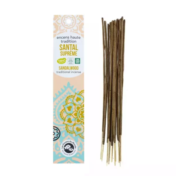 Les bâtonnets de Santal Suprême favorisent la relaxation. La force du bois et la douceur de l’ambre combinées dans un seul ingrédient. La richesse chaleureuse et apaisante du santal blanc indien en fait l’un des grands classiques des encens.