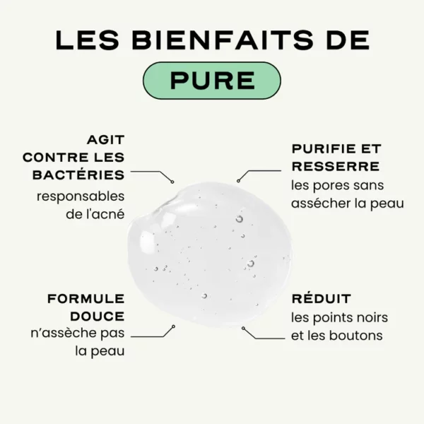Idéal pour tous les âges et tous les types d’acné (y compris l’acné du corps), PURE apaise et purifie, tous les jours, tous les types de peau. Le résultat : une peau purifiée, apaisée, douce et hydratée.
